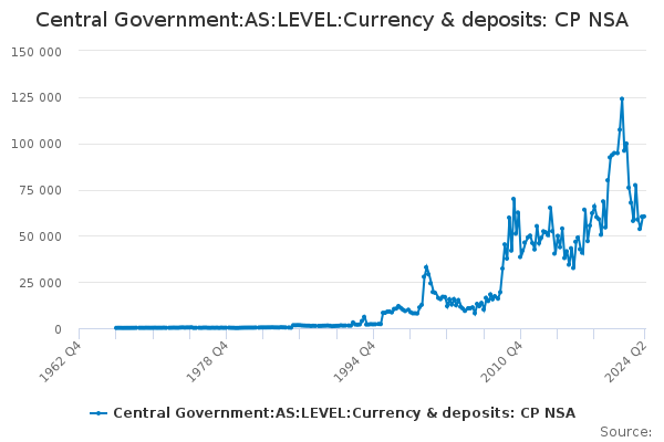 Download this time seriesCentral Government:AS:LEVEL:Currency & deposits: CP NSA