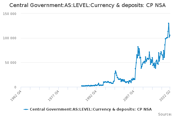 Download this time seriesCentral Government:AS:LEVEL:Currency & deposits: CP NSA