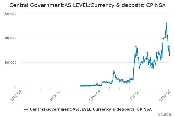 Download this time seriesCentral Government:AS:LEVEL:Currency & deposits: CP NSA
