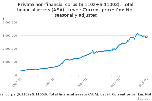 Download this time seriesPrivate non-financial corps (S.1102+S.11003): Total financial assets (AF.A): Level: Current price: £m: Not seasonally adjusted