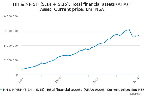 Download this time seriesHH & NPISH (S.14 + S.15): Total financial assets (AF.A): Asset: Current price: £m: NSA