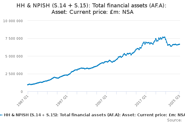 Download this time seriesHH & NPISH (S.14 + S.15): Total financial assets (AF.A): Asset: Current price: £m: NSA