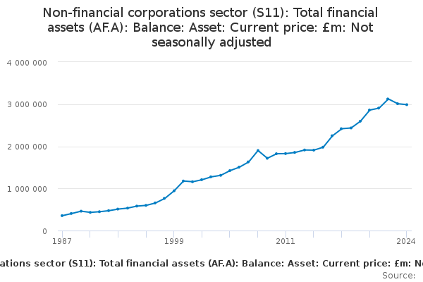 Download this time seriesNon-financial corporations sector (S11): Total financial assets (AF.A): Balance: Asset: Current price: £m: Not seasonally adjusted