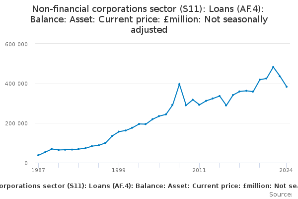 Download this time seriesNon-financial corporations sector (S11): Loans (AF.4): Balance: Asset: Current price: £million: Not seasonally adjusted