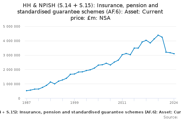 Download this time seriesHH & NPISH (S.14 + S.15): Insurance, pension and standardised guarantee schemes (AF.6): Asset: Current price: £m: NSA