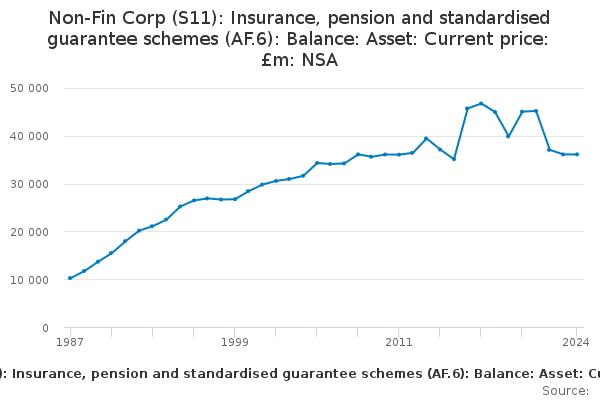 Download this time seriesNon-Fin Corp (S11): Insurance, pension and standardised guarantee schemes (AF.6): Balance: Asset: Current price: £m: NSA
