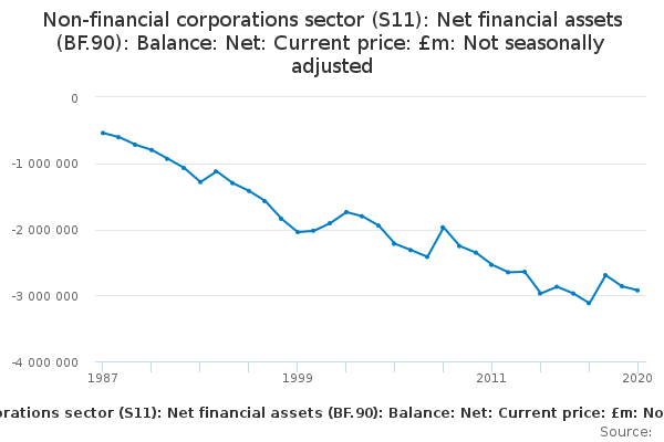 Download this time seriesNon-financial corporations sector (S11): Net financial assets (BF.90): Balance: Net: Current price: £m: Not seasonally adjusted