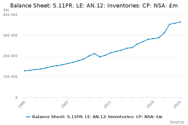 Download this time seriesBalance Sheet: S.11PR: LE: AN.12: Inventories: CP: NSA: £m