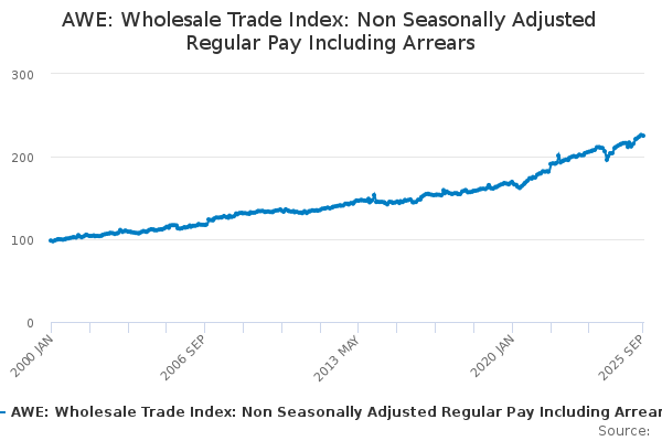 Download this time seriesAWE: Wholesale Trade Index: Non Seasonally Adjusted Regular Pay Including Arrears