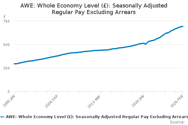 Download this time seriesAWE: Whole Economy Level (£): Seasonally Adjusted Regular Pay Excluding Arrears