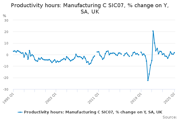 Download this time seriesProductivity hours: Manufacturing C SIC07, % change on Y, SA, UK