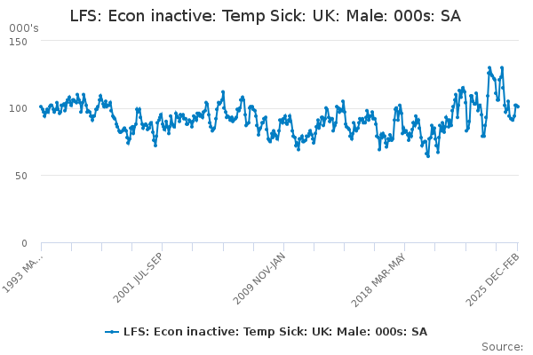Download this time seriesLFS: Econ inactive: Temp Sick: UK: Male: 000s: SA