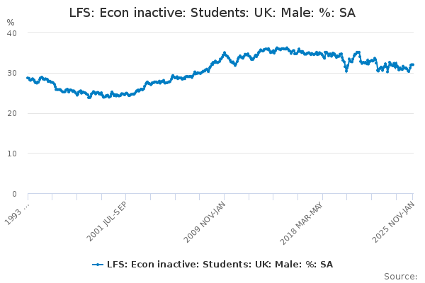 Download this time seriesLFS: Econ inactive: Students: UK: Male: %: SA