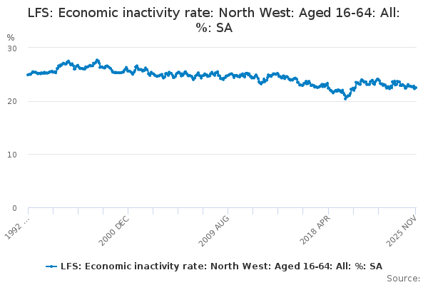 Download this time seriesLFS: Economic inactivity rate: North West: Aged 16-64: All: %: SA