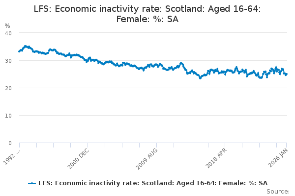 Download this time seriesLFS: Economic inactivity rate: Scotland: Aged 16-64: Female: %: SA