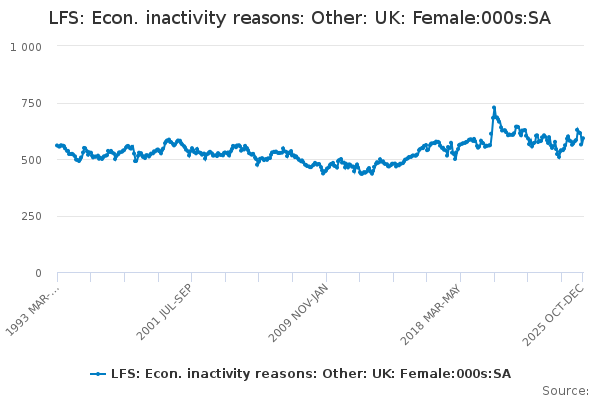 Download this time seriesLFS: Econ. inactivity reasons: Other: UK: Female:000s:SA