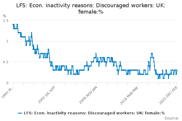 Download this time seriesLFS: Econ. inactivity reasons: Discouraged workers: UK: female:%