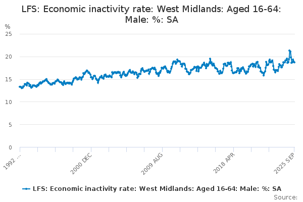 Download this time seriesLFS: Economic inactivity rate: West Midlands: Aged 16-64: Male: %: SA
