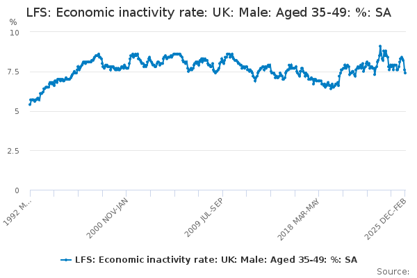Download this time seriesLFS: Economic inactivity rate: UK: Male: Aged 35-49: %: SA