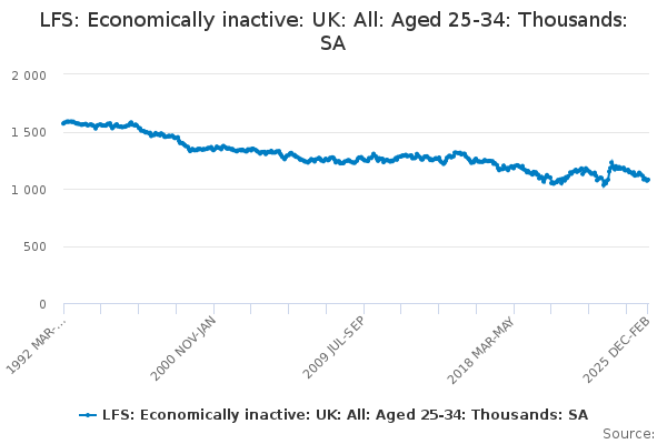 Download this time seriesLFS: Economically inactive: UK: All: Aged 25-34: Thousands: SA