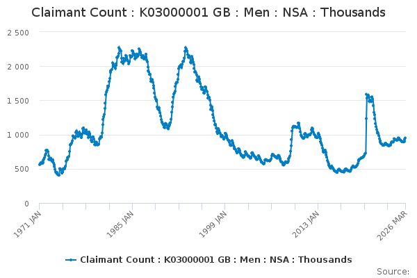 Download this time seriesClaimant Count : K03000001 GB : Men : NSA : Thousands