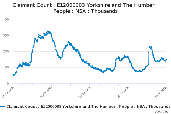 Download this time seriesClaimant Count : E12000003 Yorkshire and The Humber : People : NSA : Thousands