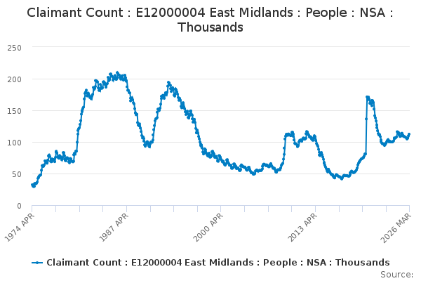 Download this time seriesClaimant Count : E12000004 East Midlands : People : NSA : Thousands