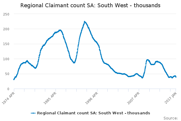 Download this time seriesRegional Claimant count SA: South West - thousands