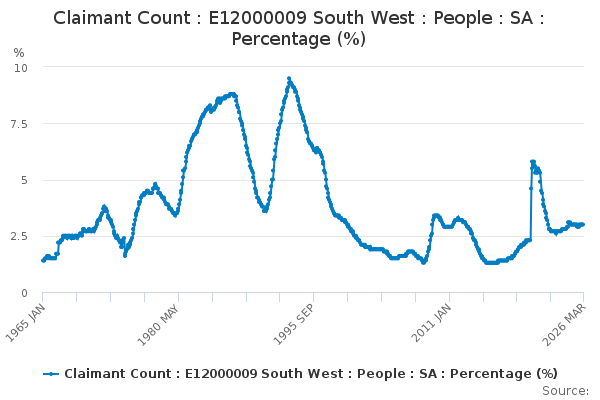 Download this time seriesClaimant Count : E12000009 South West : People : SA : Percentage (%)