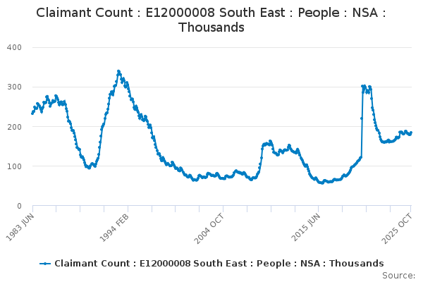 Download this time seriesClaimant Count : E12000008 South East : People : NSA : Thousands
