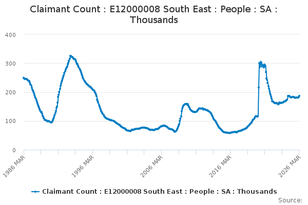 Download this time seriesClaimant Count : E12000008 South East : People : SA : Thousands