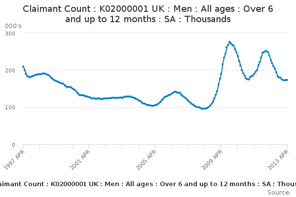 Download this time seriesClaimant Count : K02000001 UK : Men : All ages : Over 6 and up to 12 months : SA : Thousands