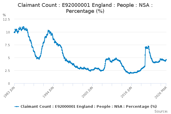 Download this time seriesClaimant Count : E92000001 England : People : NSA : Percentage (%)