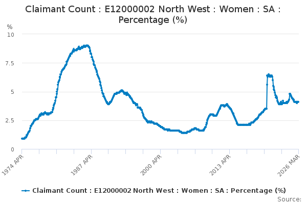 Download this time seriesClaimant Count : E12000002 North West : Women : SA : Percentage (%)