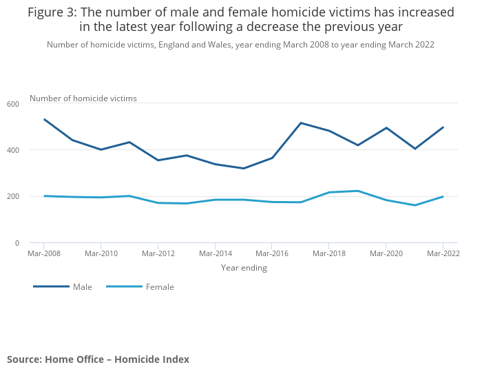 Back to table of contents10. Homicide in England and Wales: year ending March 2022 data