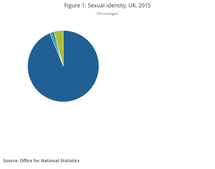 In 2015, the Annual Population Survey found 1.7% of adults in the UK identified themselves as lesbian, gay or bisexual (LGB) (Figure 1). This comprised: