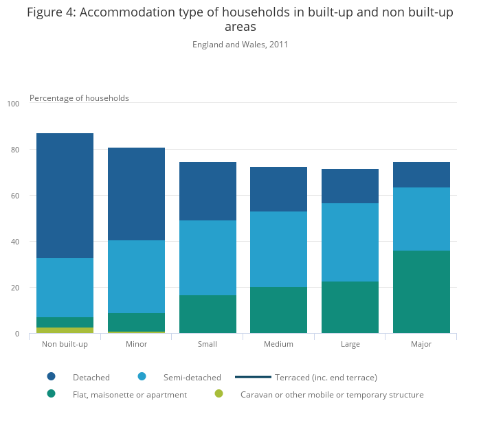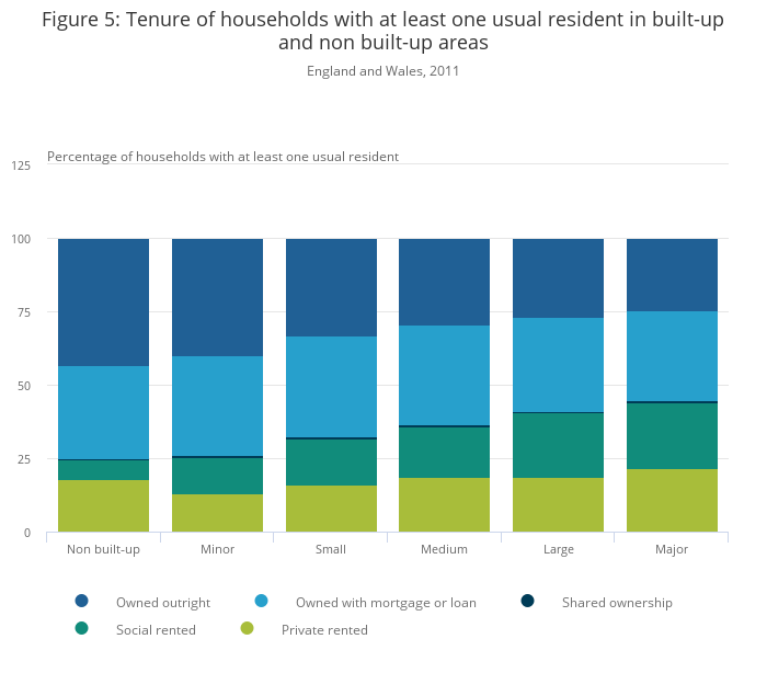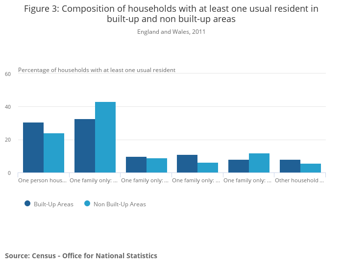 This release also includes analysis that provides insight into the characteristics of the built-up areas in England and Wales. Information is presented across a variety of census topics, and comparisons between built-up areas of different sizes are made, as well as comparisons between built-up areas and non built-up areas.