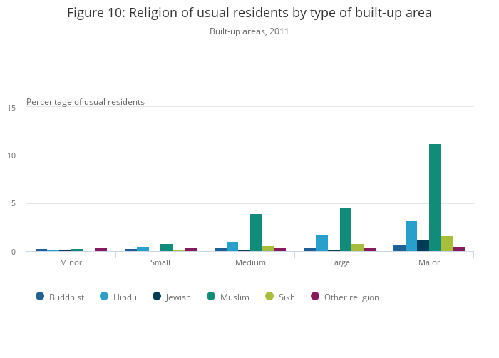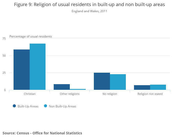 Download this chart Figure 10: Religion of usual residents by type of built-up area