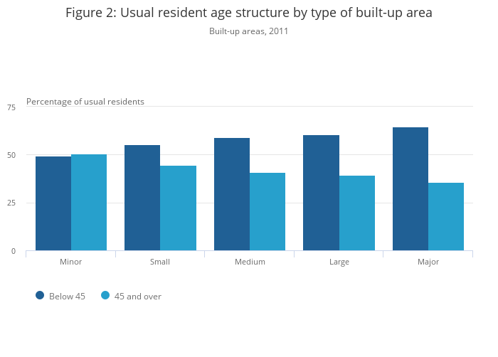 Further analysis is to be conducted on urban and rural areas. Urban areas will be defined as having 10,000 or more usual residents. Therefore, the minor built-up areas and non built-up areas discussed in this report will be categorised as rural for the purposes of the urban and rural analysis.