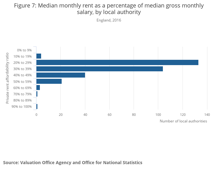 Figure 8: Median monthly rent as a percentage of median gross monthly salary, for local authorities