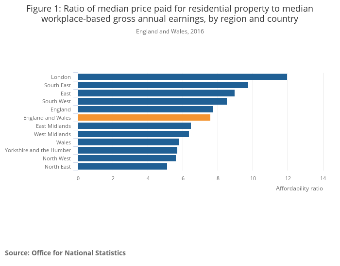 - Data from Housing Affordability in England and Wales: 1997 to 2016.