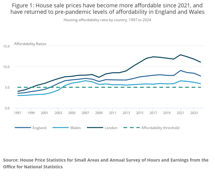Office for National Statistics (ONS), released 24 March 2025, ONS website, statistical bulletin, Housing affordability in England and Wales: 2024