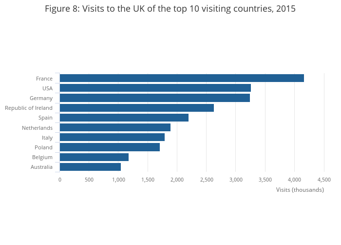 Figure 8: Visits to the UK of the top 10 visiting countries, 2015