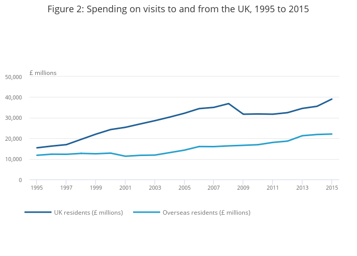 Download this chart Figure 2: Spending on visits to and from the UK, 1995 to 2015