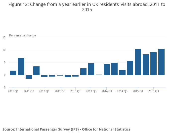 UK residents made 65.7 million visits abroad in 2015.