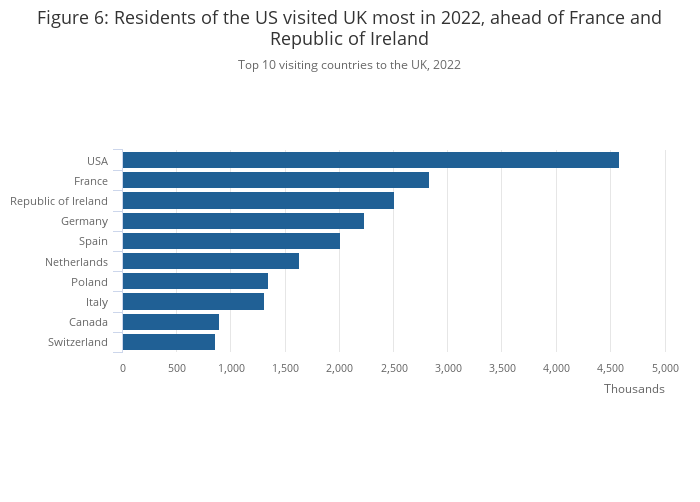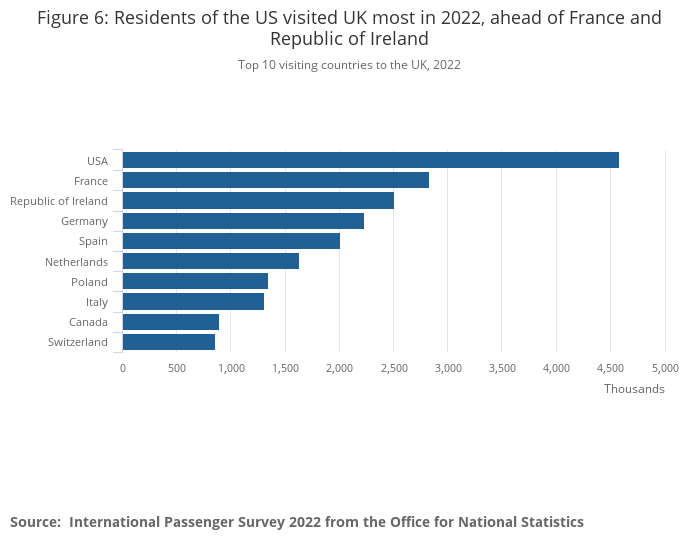 Figure 6: Residents of the US visited UK most in 2022, ahead of France and Republic of Ireland