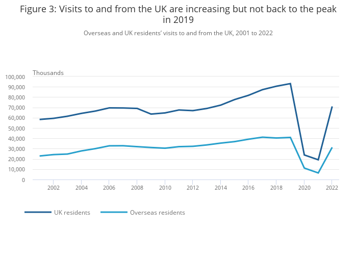 Overseas and UK residents’ visits to and from the UK, 2001 to 2022