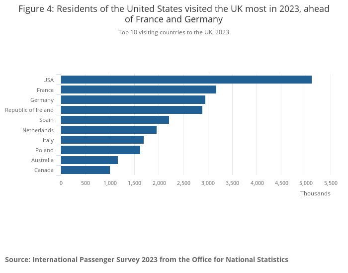 Figure 4: Residents of the United States visited the UK most in 2023, ahead of France and Germany