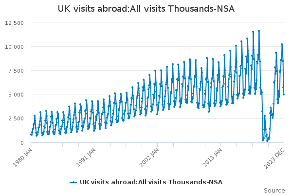 Download this time seriesUK visits abroad:All visits Thousands-NSA