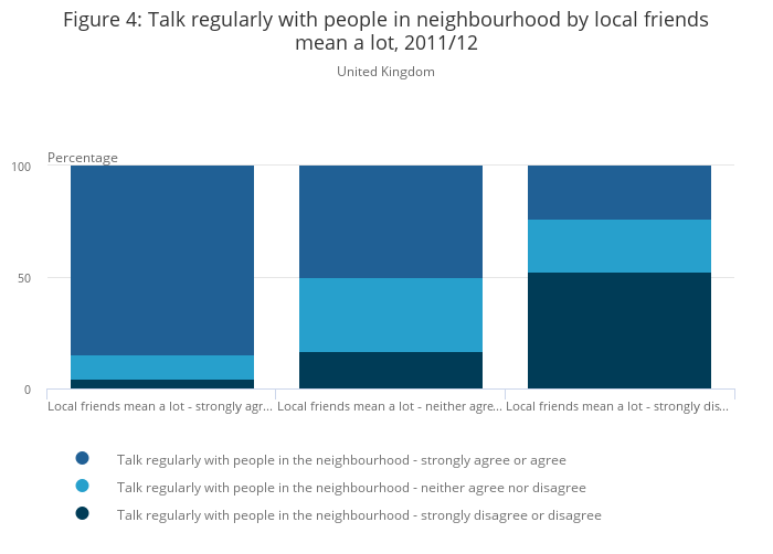 Download this chart Figure 4: Talk regularly with people in neighbourhood by local friends mean a lot, 2011/12
